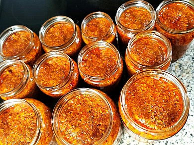 - 7kg ispečenih, oljuštenih i oceđenih paprika ajvarki one crvene krupne mesnate,